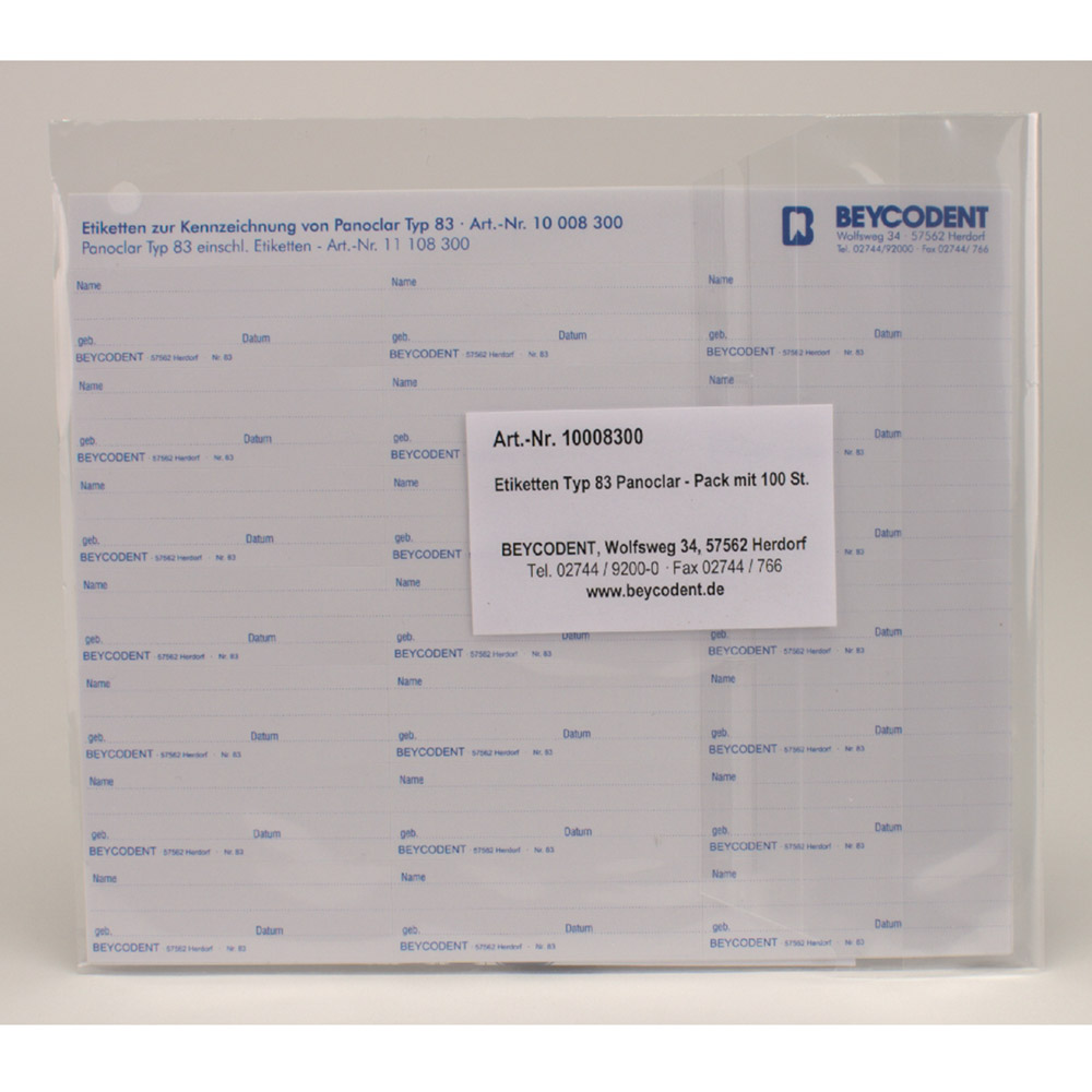 Etiketten für Panoclar Typ 83, 100 Stück