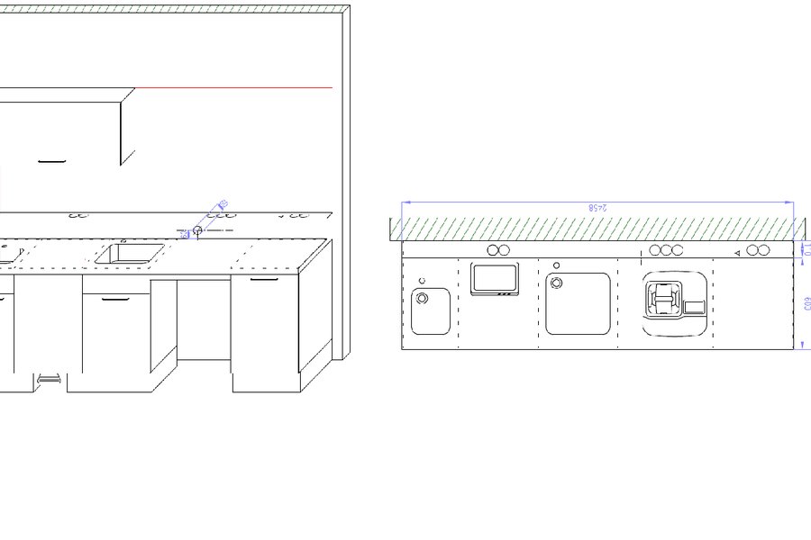 Maße Sterilisationszeile 1 (BxT): ca. 245,8 x 71 cm