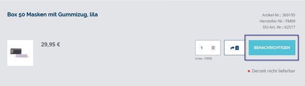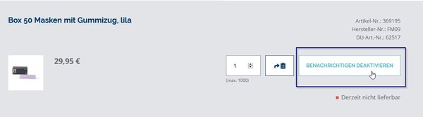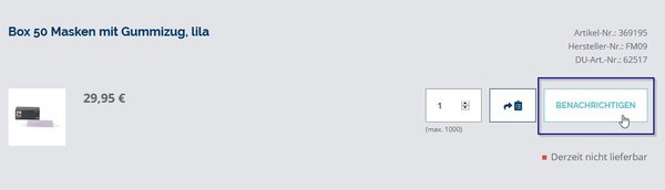 Ist ein Artikel vorübergehend nicht bestellbar bzw. nicht lieferbar, hat dieser statt des Warenkorb-Buttons einen Button "Benachrichtigen".