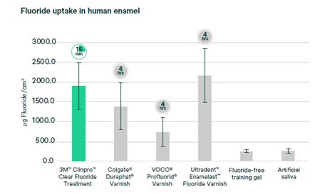 Diagramm, das die Fluoridaufnahme im menschlichen Schmelz von 3M™ Clinpro™ Clear zeigt