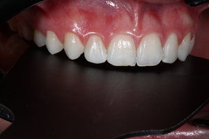 Kleine Restaurationen im Bereich der Inzisalkante sind extrem herausfordernd. Da der verfügbare Platz sehr begrenzt ist, gestaltet sich der Einsatz verschiedener Opazitäten schwierig. Im Sinne der Vereinfachung erscheint die Verwendung einer Einfarb-Technik ideal. Jedoch sind zwingend gute ästhetische Ergebnisse zu erzielen. Eine 21-jährige Patientin bei guter Gesundheit stellte sich vor, weil sie mit ihrem Lächeln unzufrieden war: „Ich hätte gern ein schöneres Lächeln. Meine seitlichen Schneidezähne sehen ausgefranst aus, der Eckzahn ist zu schnabelförmig.“ Die Opazität von 3M™ Filtek™ Easy Match passt sich der natürlichen Umgebung an und ist genau dort, wo ich es benötige, so transluzent wie Schmelz und so opak wie Dentin.
