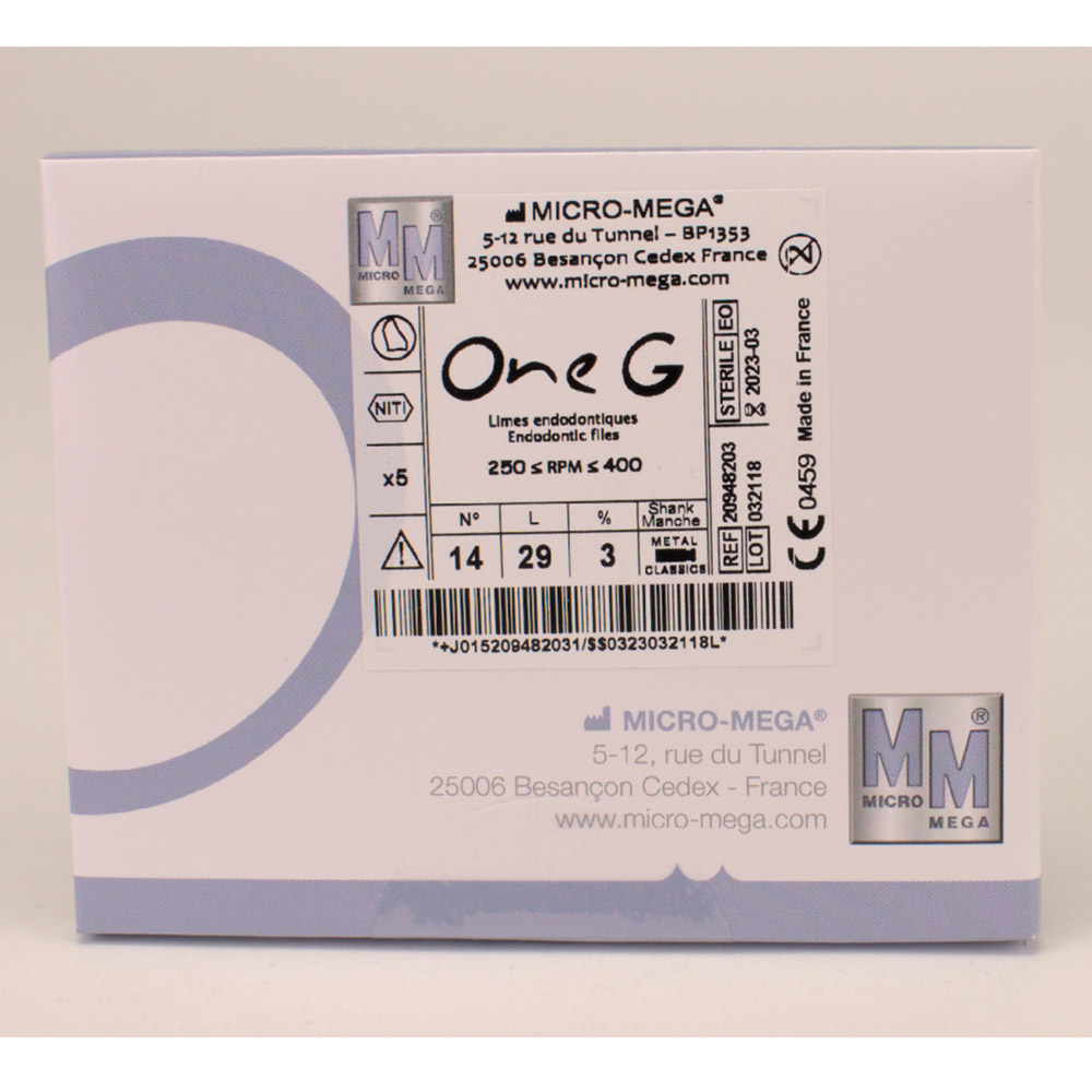 One G ist eine einzige sterile NiTi-Sondierungsfeile in kontinuierlicher Rotation zum Einmalgebrauch.