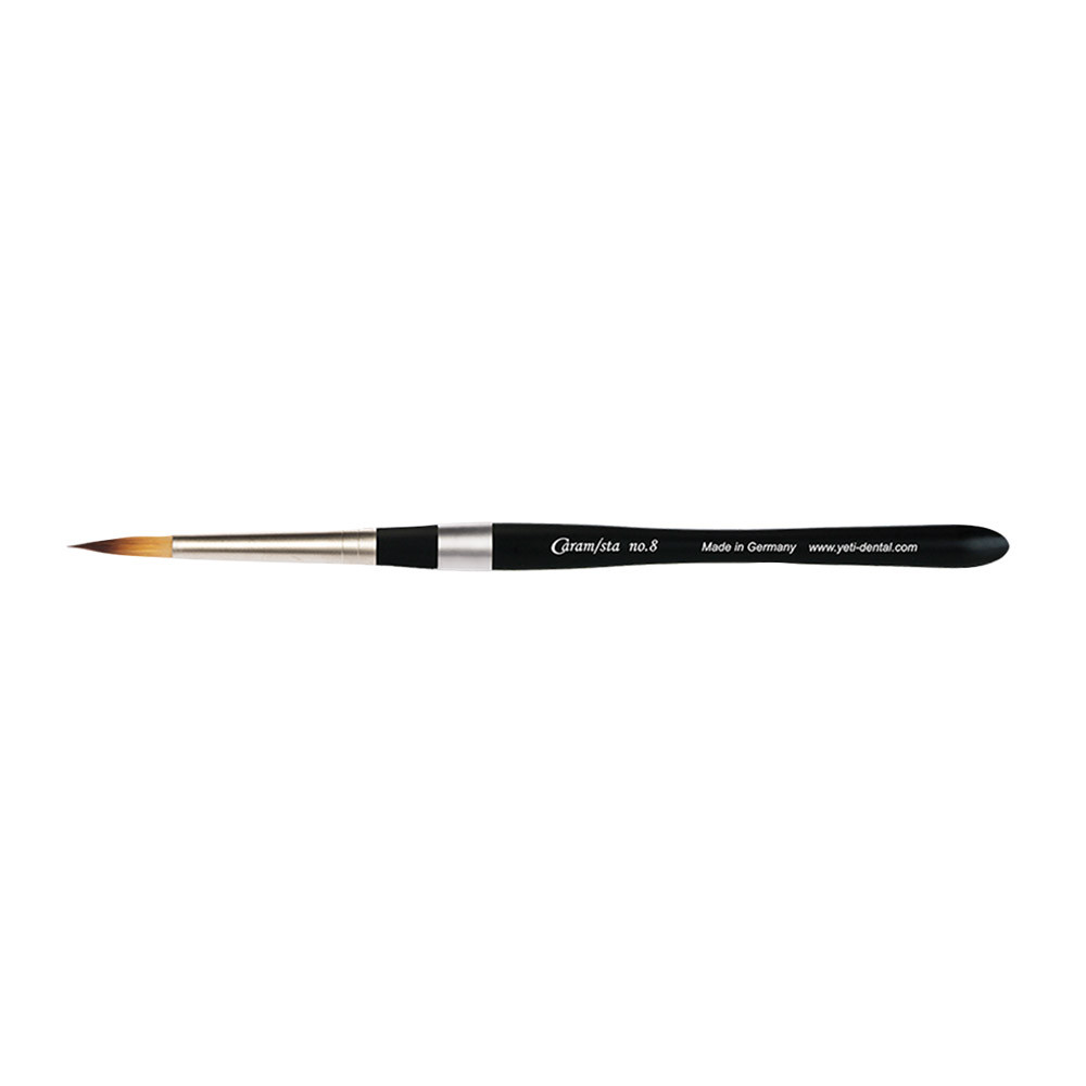 Feiner Modellierpinsel mit Holzgriff für die Keramik. Speicherung des Wasserreservoir - die Keramik wird beim Schichten gleichmäßig feucht gehalten. Die natürliche Federkraft des Pinselhaares erlaubt ein messerscharfes separieren, sowie gezielt und punktgenaues Auftragen. Spürbare Verlängerung der Standzeit der "Caramista" Pinselhaare - das Haar stellt sich, auch nach längerem Gebrauch