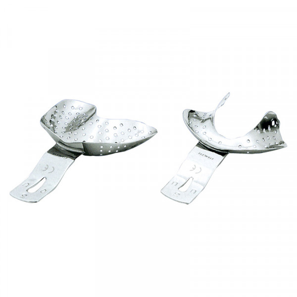 Metall-Abformlöffel für den bezahnten Kiefer, mit glatter Oberfläche, wulstigem Rand, ohne...