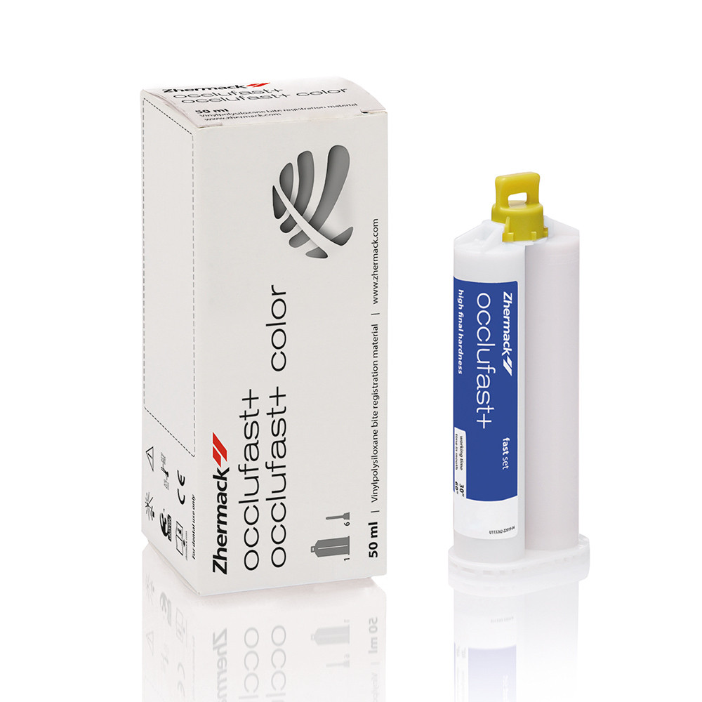 Occlufast+ ist ein Silikon mit hoher Endhärte, eigens entwickelt, um eine genaue und präzise Bissregistrierung zu erhalten.