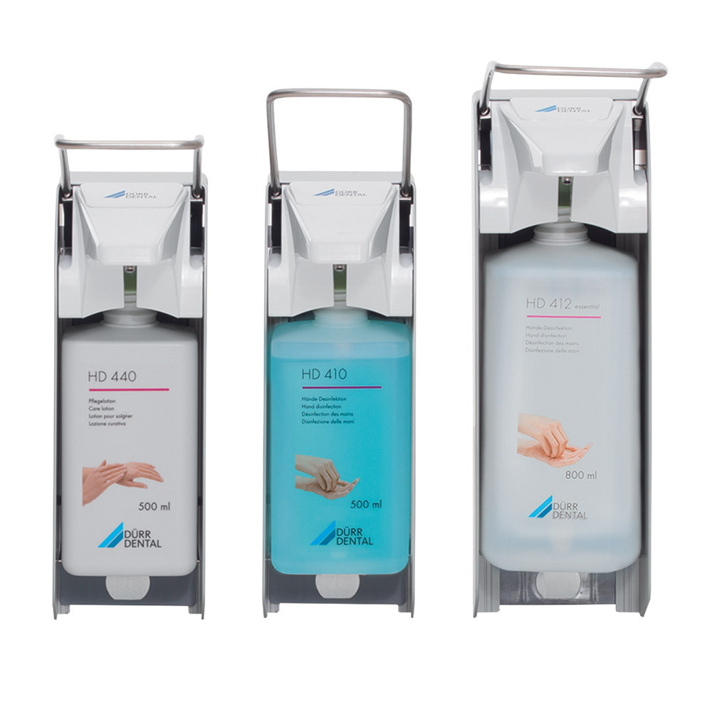 Universalpräparatespender zur Wandmontage als Applikationshilfe von HD-Präparaten • Äußerst bedienerfreundlich • Erhältlich mit kurzem (S) oder langem (L) Armhebel • Langlebige Aluminium- und Edelstahlausführung • Autoklavierbare Pumpe