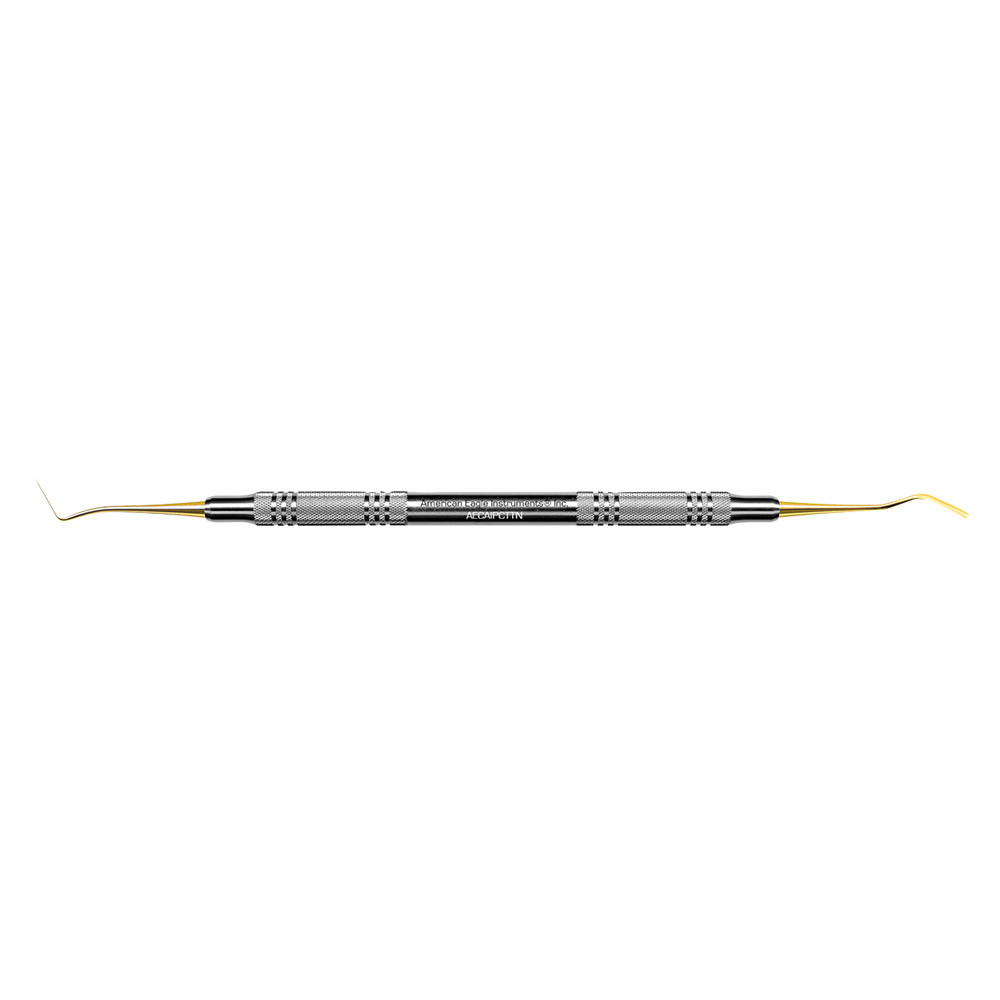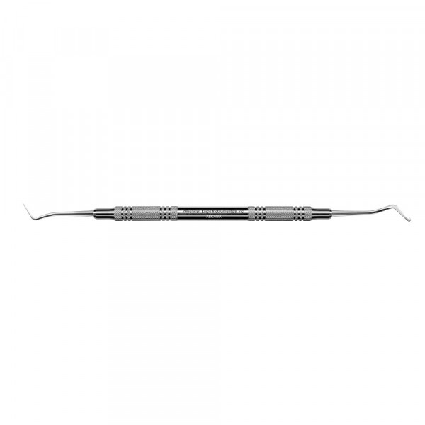 Seitenzahnscaler, stark gebogen, für optimalen Zugang zu Zahnzwischenräumen. Starre Klinge für bessere...