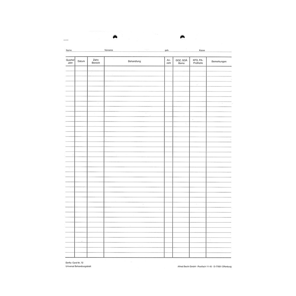 für DIN-A5-Kartei, (206 x 295 mm) kopfgelocht, Block à 100 Blatt