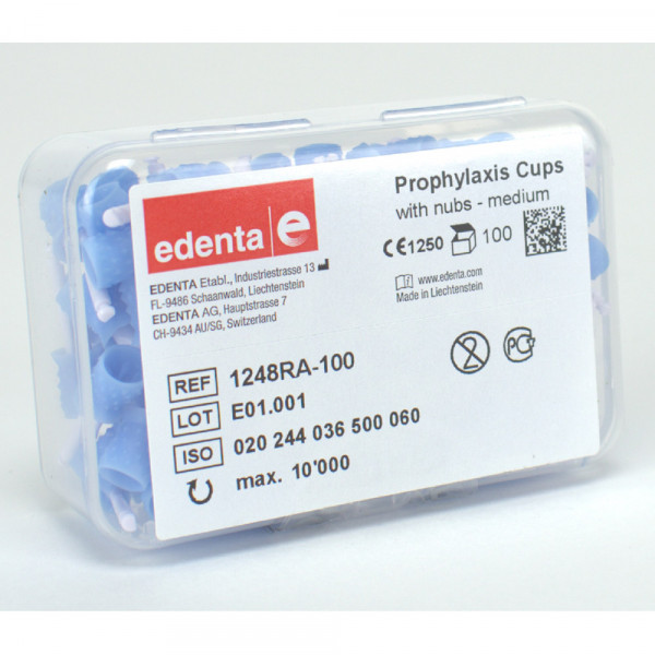 Gummikelche zur Prophylaxe, zum einmaligen Gebrauch. Latexfrei, in zwei Härtegraden, regular und soft.