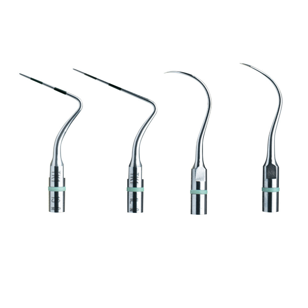Farbcodierte Spitzen mit Spray. TK1-1L = Lange Sonde. Untersuchung und Behandlung von mitteltiefen bis tiefen Taschen (> 4 mm) TK1-1S = Kurze Sonde. Untersuchung von kleinen bis mitteltiefen Taschen (< 4 mm) TK2-1L = Seitenzahnbereich, links gebogen. Erhaltungsbehandlung von mitteltiefen bis tiefen Taschen sowie Furkationen TK2-1R = Seitenzahnbereich, rechts gebogen. Erhaltungsbehandlung von mitteltiefen bis tiefen Taschen sowie Furkationen